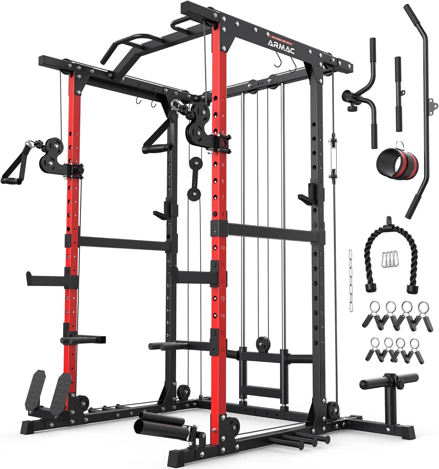 ARMAC Power Cage,1500lbs Multi-Function Power Rack with Adjustable Cable Crossover System and More Training Attachment, Weight Cage for Home Gym